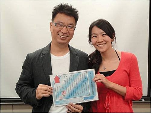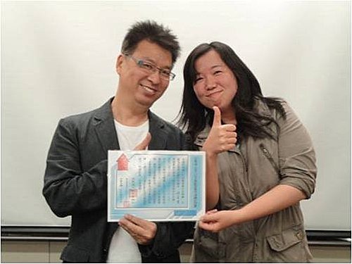 ▲特地穿紅衣來慶祝結業的美女學員。
