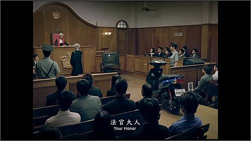 ▲圖二:用港劇中的法庭戲來演機車廣告已很鮮,劇中還找來一堆臨演,盛大的排場也是機車廣告中少見。