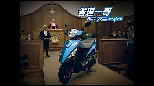 如三陽SYM的GT125 evo,最近找來浩角翔起所演的「全民公『省』」篇廣告,雖然是在做比較,就比的既有趣,也充滿創意。套入的梗雖是港劇針鋒相對的法庭戲(為符合港語「一哥」而包裝成港劇),但演來就較不見咄咄逼人的火氣!