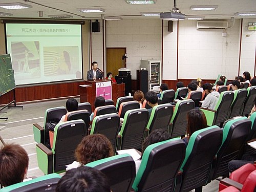 ↑圖文說明:4/17竹教大的演講,講題是"文案達人帶您看廣告之美",聽講的學生雖不是廣告傳播的本科系,但台下的每個學生都依然聽的津津有味,甚至是意猶未盡!顯見無界限的創意,絕對可打破科系與地域的藩籬。