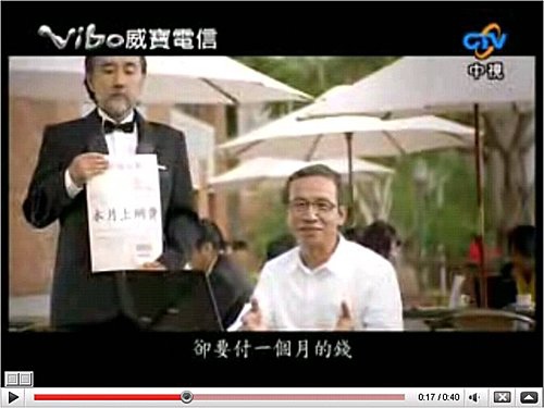 ↑圖文說明:演員在吳念真執導的廣告片裏,重疊性過高,也是另一個引人詬病的話題,像吳導左邊這位演員在吳導的廣告片裏,重覆曝光度不只過高,角色也忽反忽正,一下演話費壓榨的催繳者,一下又演La new複合門市的鑑賞家,導致廣告信任度及說服力產生自己互相衝突打架的問題,也傷到後者廣告的品牌好感度!欲收看本支廣告,請點選威寶電信吳念真月租型VS.日租型TVChttp://tw.youtube.com/watch?v=wvo05urRFeA&feature=related