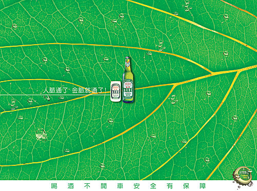 以鮮綠葉片為素材,除了巧妙呈現啤酒與人脈網絡關聯外,也在於持續強化台啤生鮮的印象。
