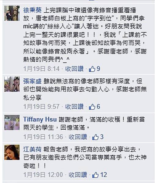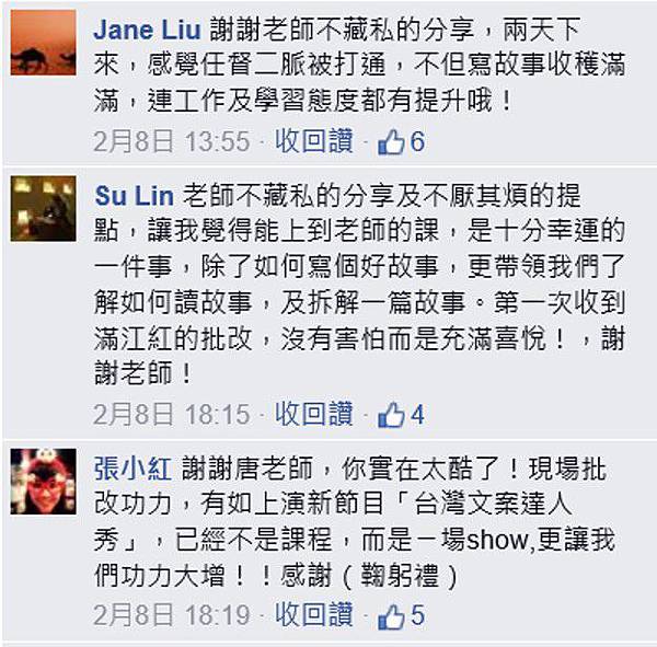 ▲上完文案達人故事三班的學員,在fb上寫下他們滿滿的感懷..